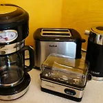 La Bergisches Cottage Solingen - Tiny House Mit Garten cuenta con una cocina bien equipada, cafetera, nevera y menaje de cocina. Los huéspedes pueden disfrutar de una comida en el restaurante Junkbrunnen, situado a 600 metros.